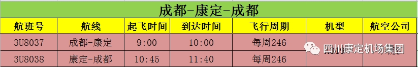 3月5日,記者從四川康定機場集團獲悉,甘孜州內(nèi)康定、稻城、格薩爾三大機場航線航班已于日前陸續(xù)恢復,調(diào)整后的航線航班為:成都—康定航班每周執(zhí)飛周二、周四、周六,特價機票單程低至399元,往返低至699元;成都—稻城航班每天1班;成都—格薩爾航班每周執(zhí)飛周一、周三、周五、周日。具體以預(yù)定時查詢?yōu)闇省?刀C場集團航線航班查詢訂票熱線:028—61512291。