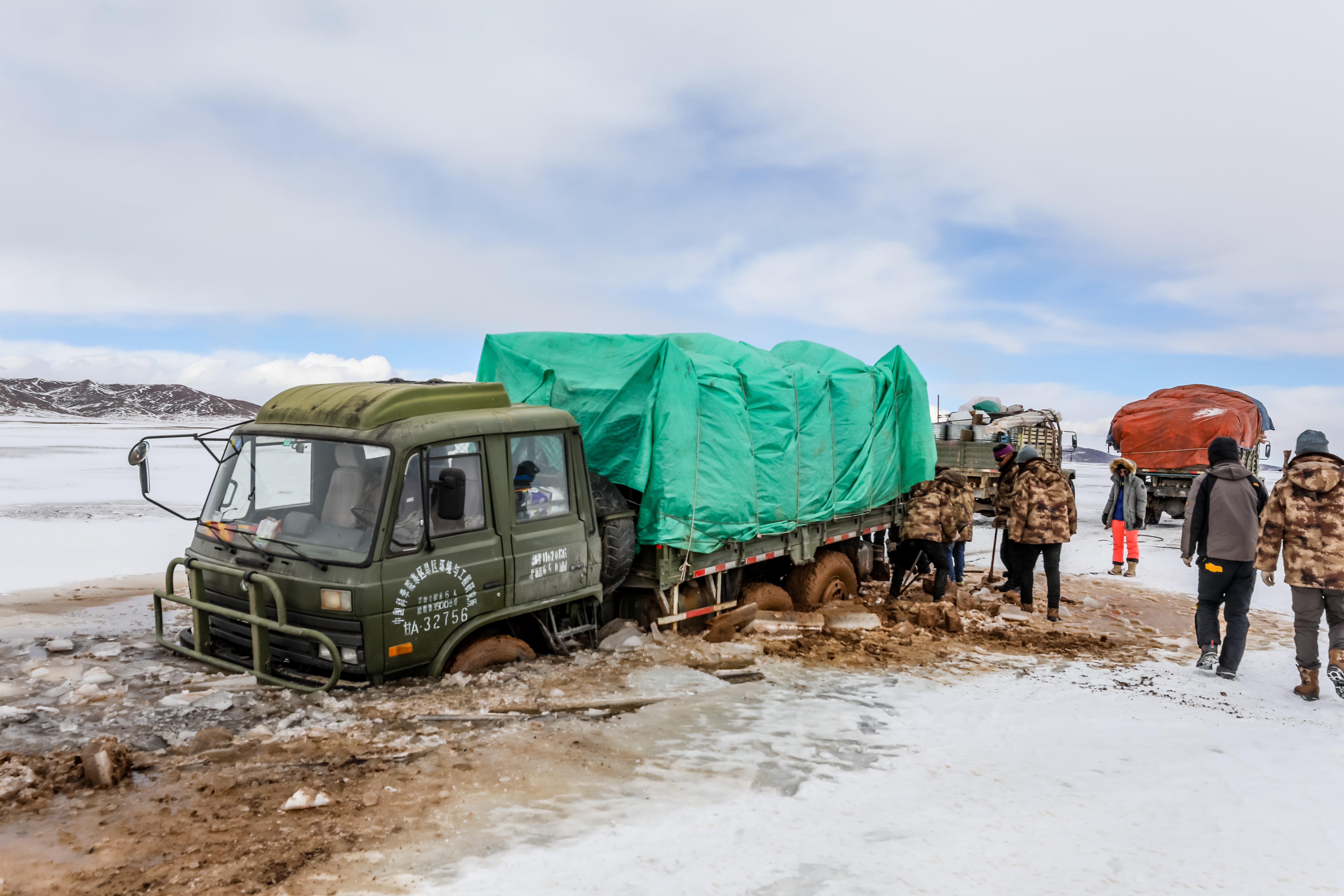 科考隊行進中遇到“陷車”情況。第二次青藏科考湖泊演變及氣候變化響應科考分隊供圖