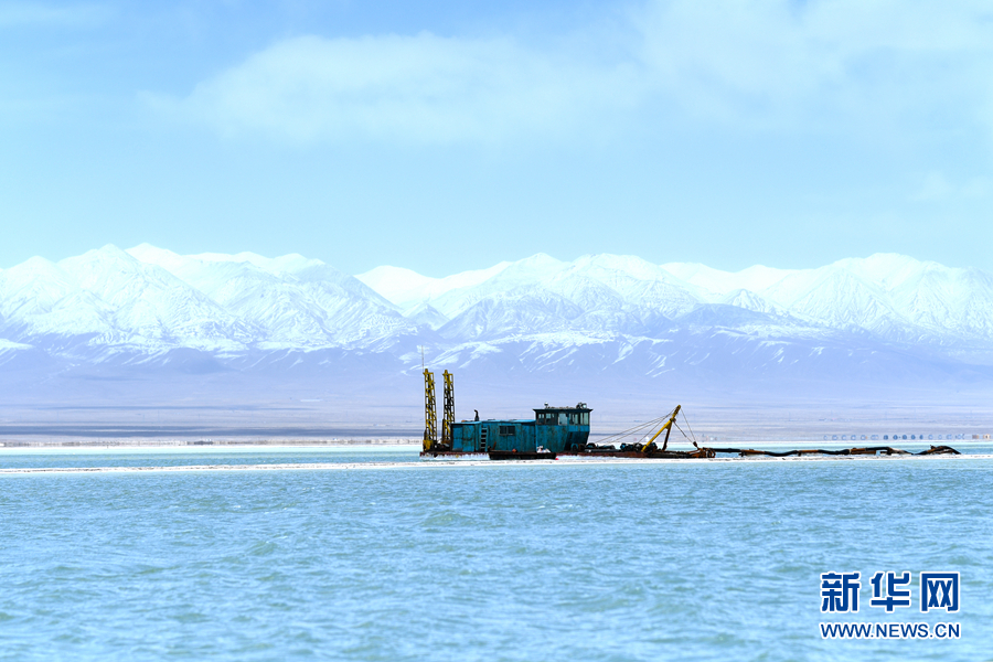 正在作業(yè)中的采鹽船。新華網(wǎng) 潘彬彬攝