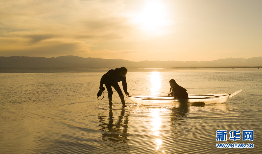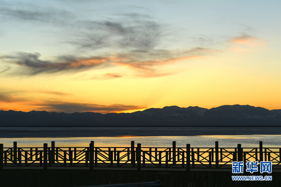 夕陽(yáng)下的茶卡鹽湖。新華網(wǎng) 潘彬彬攝