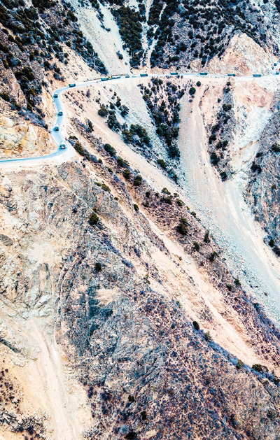 318川藏線最危險(xiǎn)的盤山公路莫過于覺巴山。覺巴山的艱險(xiǎn),在路上,更在心理上。這是一條在懸崖峭壁上鑿出的天路,一邊是峭壁,一旁是百米高的懸崖,許多路段連護(hù)欄都沒有。郭宏 攝