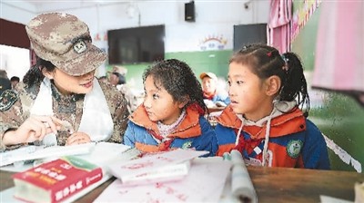 任務(wù)途中,官兵來到沿線藏族中學(xué),與孩子們做游戲、輔導(dǎo)功課,開展國(guó)防教育,讓愛灑滿雪域高原。郭宏 攝