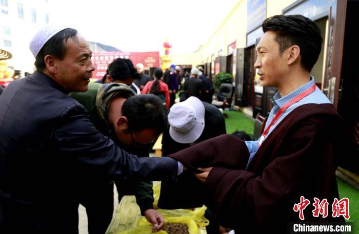 圖為買賣雙方在現(xiàn)場進行洽談。青海省冬蟲夏草協(xié)會供圖
