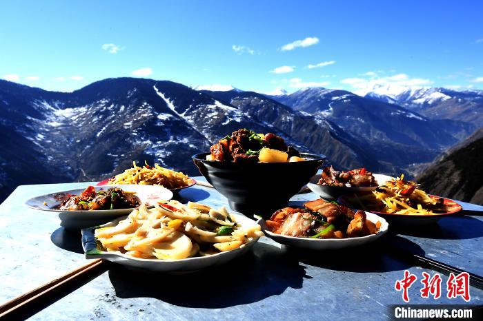 最近,有一段視頻在網(wǎng)上流傳:拍攝地點在四川省阿壩州小金縣老營鄉(xiāng)麻足寨,海拔3200米。畫面里,整潔的餐桌上擺著美食,浮云飄在身后,青山藍天盡收眼底,遠處的雪山躲在云海后忽隱忽現(xiàn)。