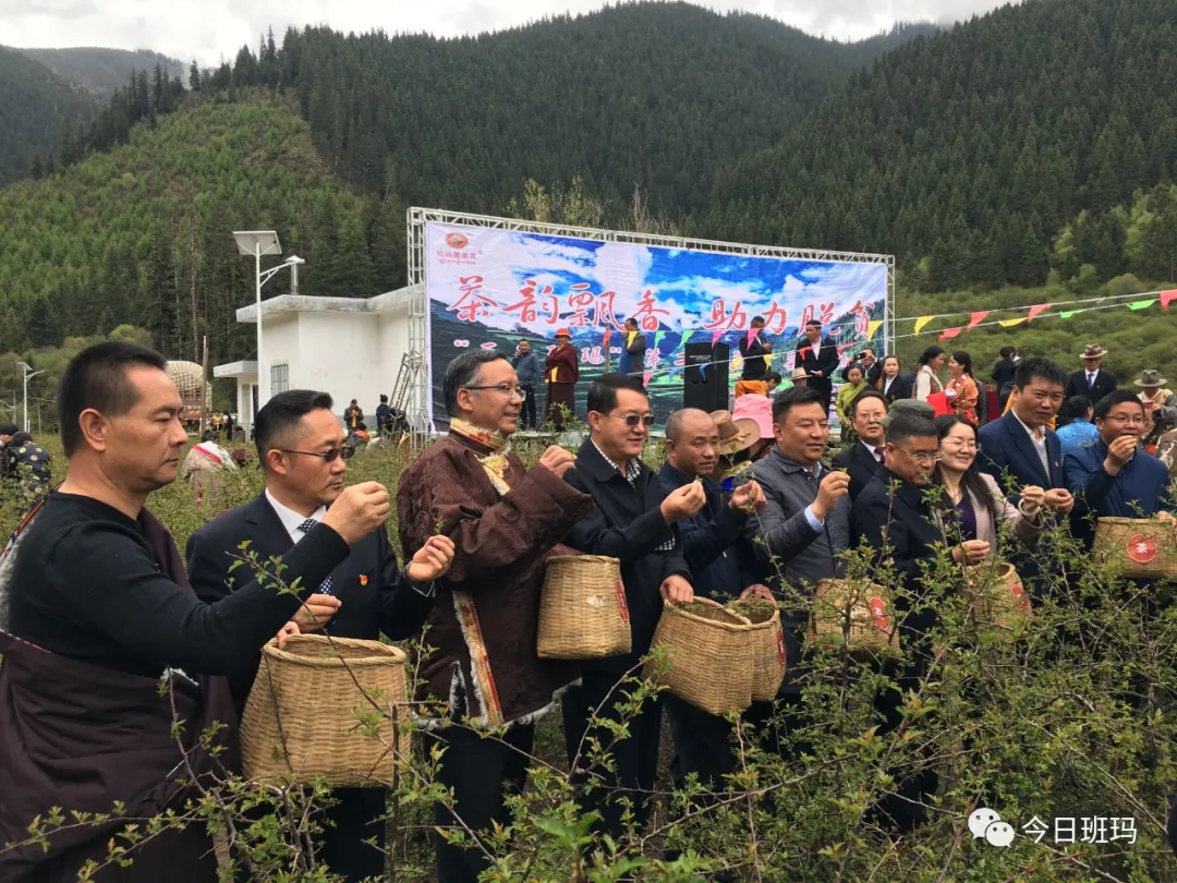 六月的班瑪大地生機勃發(fā)、草木欣榮,美麗的瑪可河畔碧波蕩漾、茶韻飄香。6月6日,在首個“國際茶日”剛剛過去不久,由中共班瑪縣委、班瑪縣人民政府、青海省瑪可河林業(yè)局主辦,中共班瑪縣委宣傳部、班瑪縣文體旅游廣電局、班瑪縣林業(yè)和草原局、班瑪縣扶貧開發(fā)局、班瑪縣藏雪茶產業(yè)開發(fā)有限責任公司承辦的“三色班瑪”第二屆藏雪茶采摘節(jié),在省瑪可河林業(yè)局院內熱烈舉行。在縣副縣級以上領導干部,各鄉(xiāng)鎮(zhèn)黨委書記、鄉(xiāng)鎮(zhèn)長,縣級各部門各單位負責人,瑪可河林業(yè)局干部職工,各村黨支部書記和燈塔鄉(xiāng)廣大牧民群眾參加了活動?;顒犹貏e邀請毗鄰的四川省壤塘縣縣委常委、宣傳部部長孫???,壤塘縣人民政府副縣長孫宏斌參加??h委常委、縣政府常務副縣長韓尚軍主持活動。省瑪可河林業(yè)局黨委書記韓才邦宣布“三色班瑪”第二屆藏雪茶采摘節(jié)開幕。