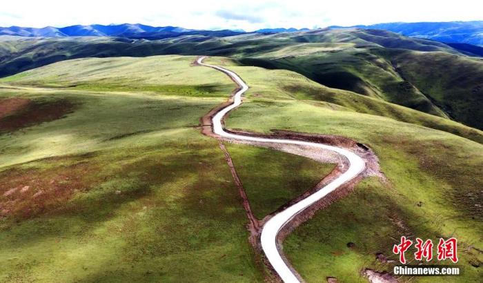 村民口中的“尚藍(lán)天路”,是一條連接四川阿壩藏族羌族自治州壤塘縣上杜柯鄉(xiāng)和南達(dá)木鎮(zhèn),途經(jīng)吾克基村、阿斯瑪村、三郎村的鄉(xiāng)道。這條海拔3000米以上、總長近40公里的水泥公路,劃破長滿青草的山脊,奮力向遠(yuǎn)方延伸。