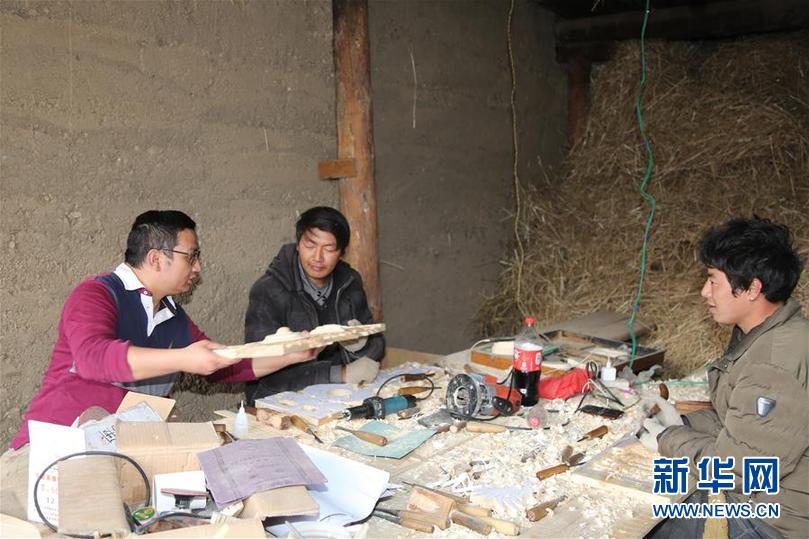 扎西才讓?zhuān)ㄗ螅┡c村里的木匠探討木工產(chǎn)業(yè)發(fā)展(4月4日攝)。東宮村即將招募村內(nèi)愿意學(xué)習(xí)木工的青年,開(kāi)辦木工培訓(xùn)班,讓更多人掌握一門(mén)手藝。新華社發(fā)(張顥 攝)
