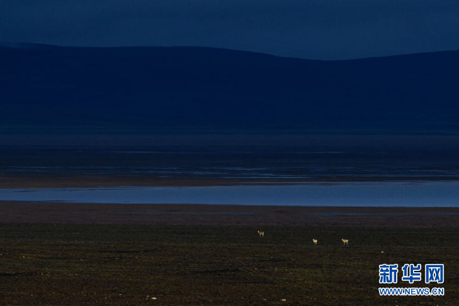 7月7日在可可西里卓乃湖區(qū)域拍攝的藏羚羊。新華社記者 張龍 攝