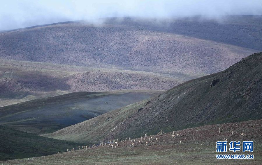 7月7日在可可西里卓乃湖區(qū)域拍攝的一群藏羚羊。新華社記者 張龍 攝