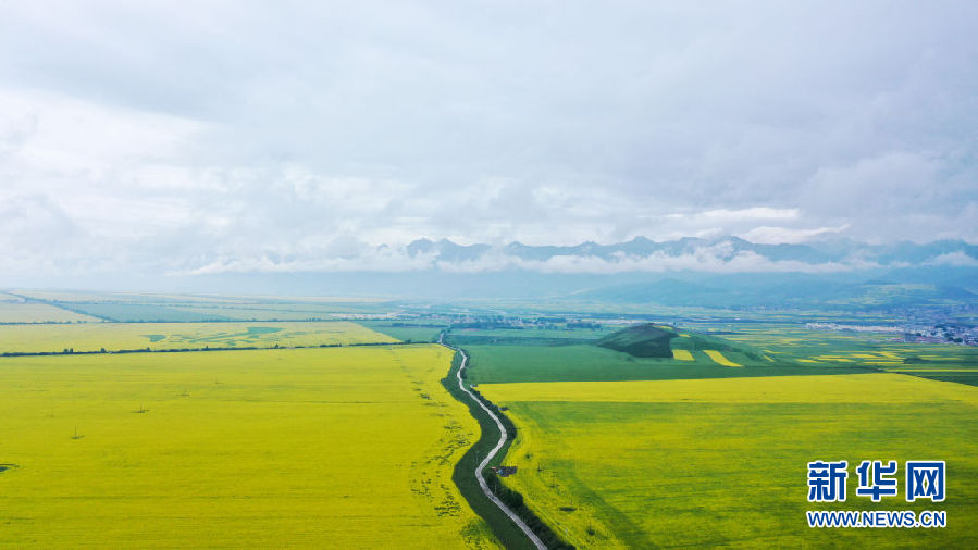 時下正值高原油菜花競相綻放的季節(jié),在青海省海北藏族自治州門源回族自治縣,金黃色的油菜花在高原藍天和云霧映襯下形成一幅壯麗畫卷,吸引游客前來觀賞。