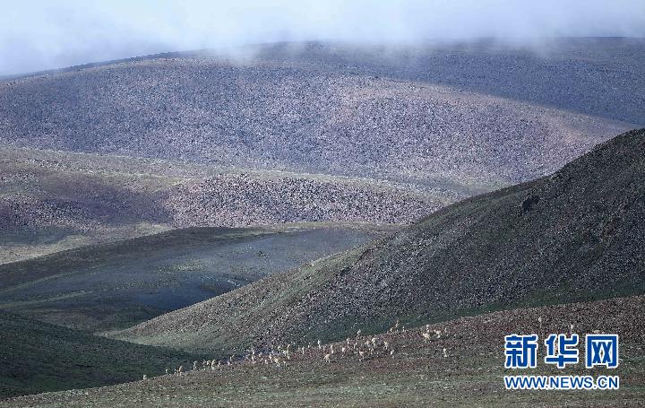 7月7日在可可西里卓乃湖區(qū)域拍攝的一群藏羚羊。新華社記者 薛玉斌 攝