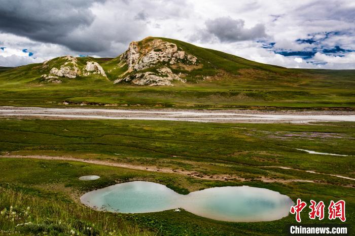 圖為位于雜多縣扎青鄉(xiāng)托乎曲大草原內(nèi)的“眼睛湖”,由于兩湖在水大時(shí)連在一起,好像一副眼睛。功霸扎西達(dá)杰 攝