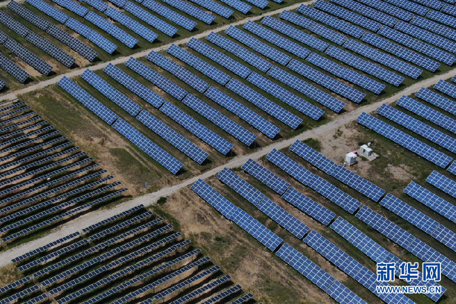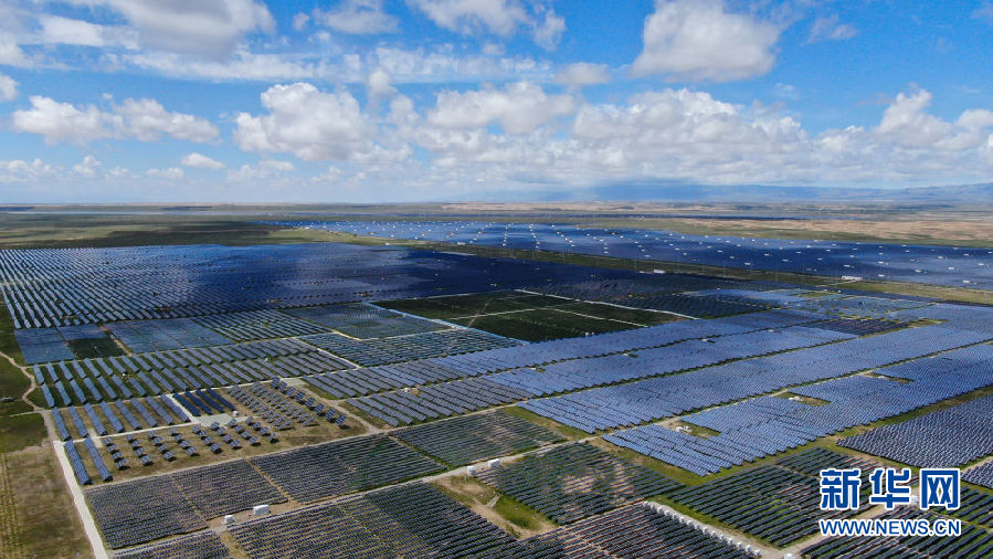 這是8月17日在青海省海南藏族自治州共和縣塔拉灘綠色產(chǎn)業(yè)發(fā)展園區(qū)拍攝的光伏電站(無人機照片)。新華社記者 張龍 攝