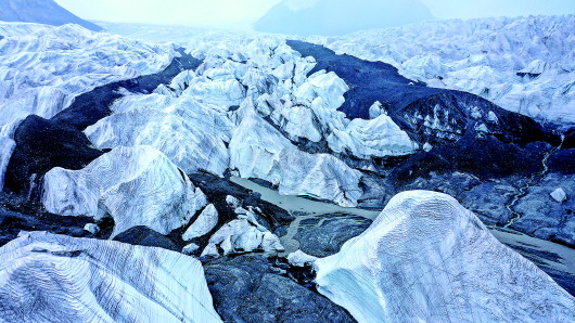 這是8月15日拍攝的崗加曲巴冰川(無人機(jī)照片)。吳剛 攝