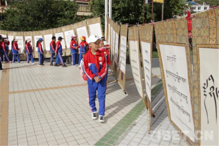 中國西藏網(wǎng)訊 9月25日,四川省甘孜藏族自治州得榮縣“喜迎建州70周年?首屆藏文書法展覽活動”開幕。書法愛好者、農(nóng)牧民群眾、中小學(xué)生、僧尼等近1000余人在書法長卷、古籍前駐足學(xué)習(xí)、拍照。