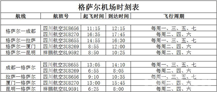 新航線開通后,甘孜格薩爾機場在飛的往返航線已有成都、拉薩、廈門、昆明,目前航線網(wǎng)絡(luò)正逐步完善加密。