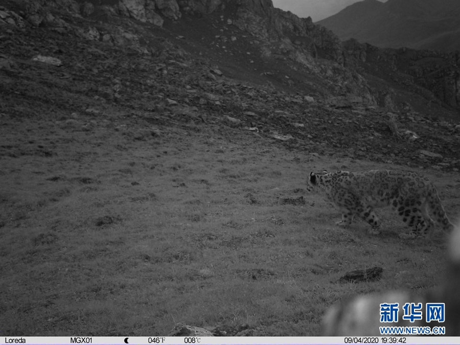 這是9月4日在祁連山東端的青海省海東市互助土族自治縣北山林場(chǎng)拍攝到的雪豹母子玩耍嬉戲的影像。新華社發(fā)