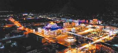 夜幕降臨,燈火輝煌的石渠鍋莊廣場(chǎng)。呂甲 攝