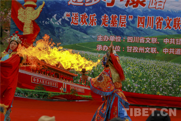中國西藏網(wǎng)訊 10月20日,由四川省文聯(lián)、甘孜州委宣傳部主辦的“邁步小康路,鑄牢中國魂”送歡樂下基層活動(dòng)在四川省甘孜藏族自治州道孚縣麻孜鄉(xiāng)溝爾普村舉行。