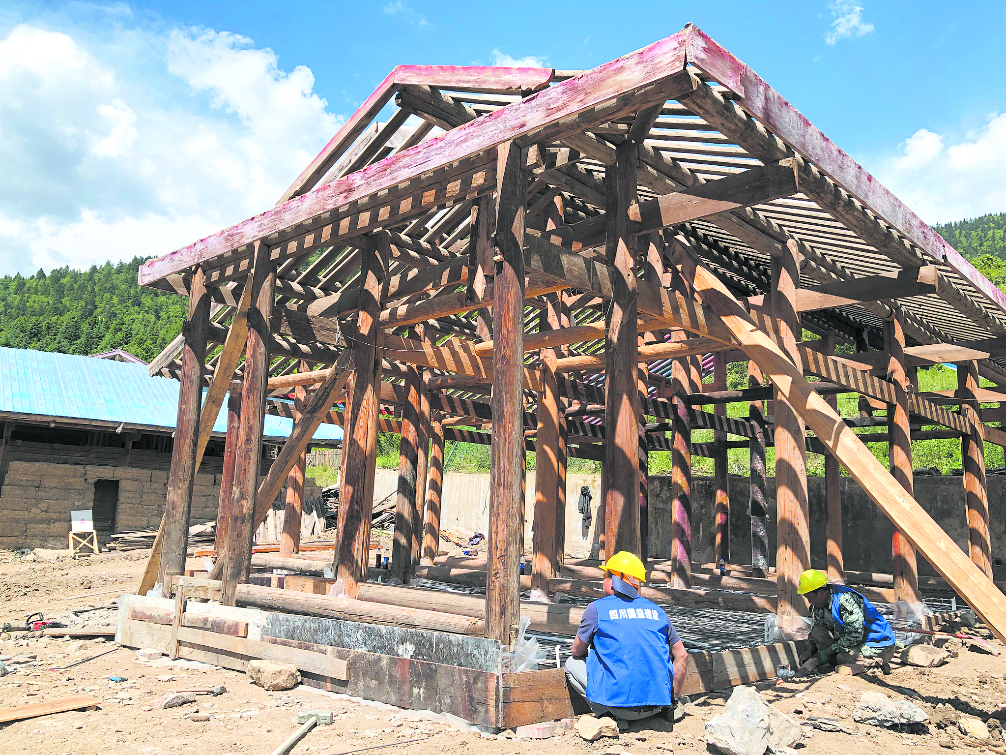 圖片的拍攝地點是四川省阿壩藏族羌族自治州九寨溝縣漳扎鎮(zhèn)上四寨村,圖中現(xiàn)代氣息的落地窗與毛石砌墻木瓦覆頂,藏式文化元素結(jié)合的建筑,是邛崍市第五批對口支援工作隊結(jié)合漳扎鎮(zhèn)國際魅力生態(tài)小鎮(zhèn)建設(shè),引入邛崍市資深文旅企業(yè),在九寨溝縣落地的“首秀”。