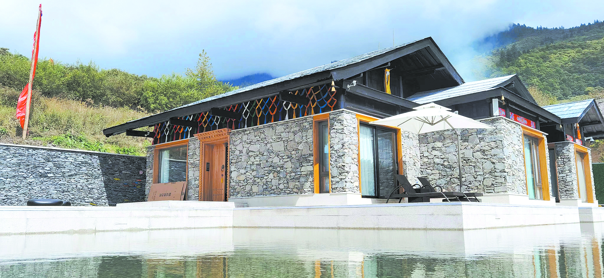 往前方望去,山勢起伏,云海翻卷,氣象萬千;往身后看,現(xiàn)代氣息的落地窗與石條砌墻灰瓦覆頂,結(jié)合藏式文化元素的新藏寨,在屋前環(huán)繞的水面倒映下,一個未來網(wǎng)紅打卡地呼之欲出。[詳細(xì)] -