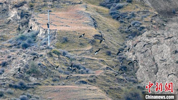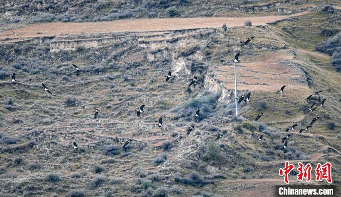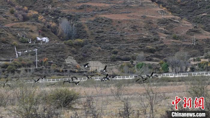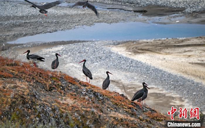 爐霍迎來遷徙途中的100多只黑鸛。益西次里 攝