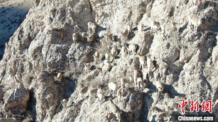 12月中旬,在地處祁連山區(qū)的甘肅肅南縣祁豐藏族鄉(xiāng)吊達(dá)坂附近,肅南縣融媒體中心記者拍攝到數(shù)群巖羊在公路旁的山坡上悠閑覓食。據(jù)目測,此次拍到公路旁覓食巖羊約有200多只。巖羊是國家二級重點保護(hù)野生動物,體型中等,形態(tài)介于野山羊與野綿羊之間。巖羊具有極高的攀巖技術(shù),可以在絕壁上自由跳躍,一跳可達(dá)二三米,因此也被稱為“巖壁上的精靈”。近年來,肅南縣深入推進(jìn)祁連山國家級自然保護(hù)區(qū)生態(tài)文明建設(shè),加強(qiáng)保護(hù)區(qū)管理,實施退牧還草等措施,當(dāng)?shù)厣鷳B(tài)環(huán)境逐步改善,民眾保護(hù)意識不斷增強(qiáng),使得當(dāng)?shù)匾吧鷦游飻?shù)量逐年增加。