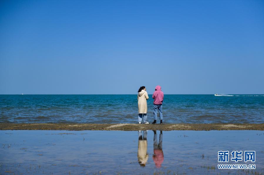 游客在青海湖邊游玩(9月23日攝)。新華社記者 張龍 攝