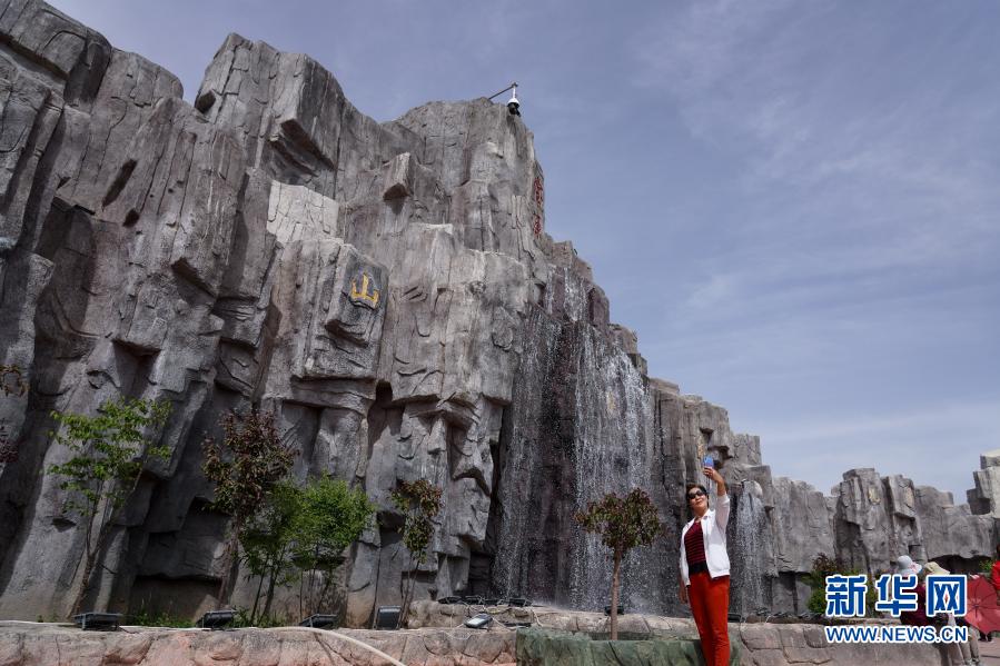 6月9日,一名游客在青海卓扎灘原生態(tài)景區(qū)拍照留念。新華社記者 吳剛 攝