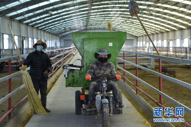 天氣轉(zhuǎn)寒,一大早,澤本太來到牛棚里打掃衛(wèi)生,添加飼草。29歲的澤本太是金山生態(tài)畜牧業(yè)專業(yè)合作社的一名放牧員,每天操心著牧場里的數(shù)百頭牛羊。而在一年前,他還是一個靠天吃飯的“放羊娃”。