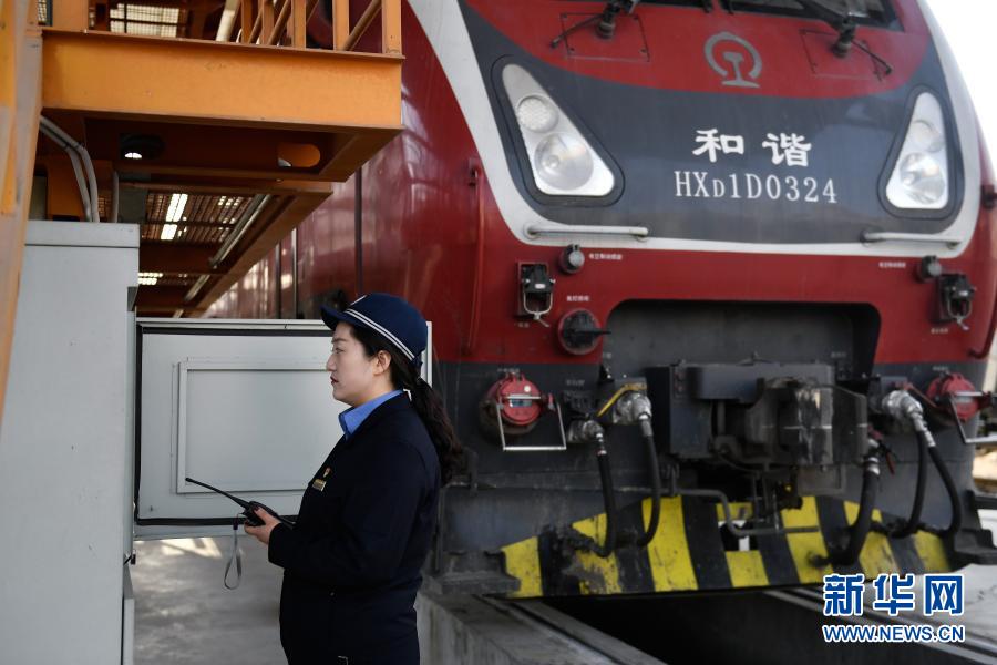 2月24日,在青藏鐵路公司西寧機(jī)務(wù)段整備車間,隔離開關(guān)班組成員賀霞(左)在工作中。新華社記者 張龍 攝