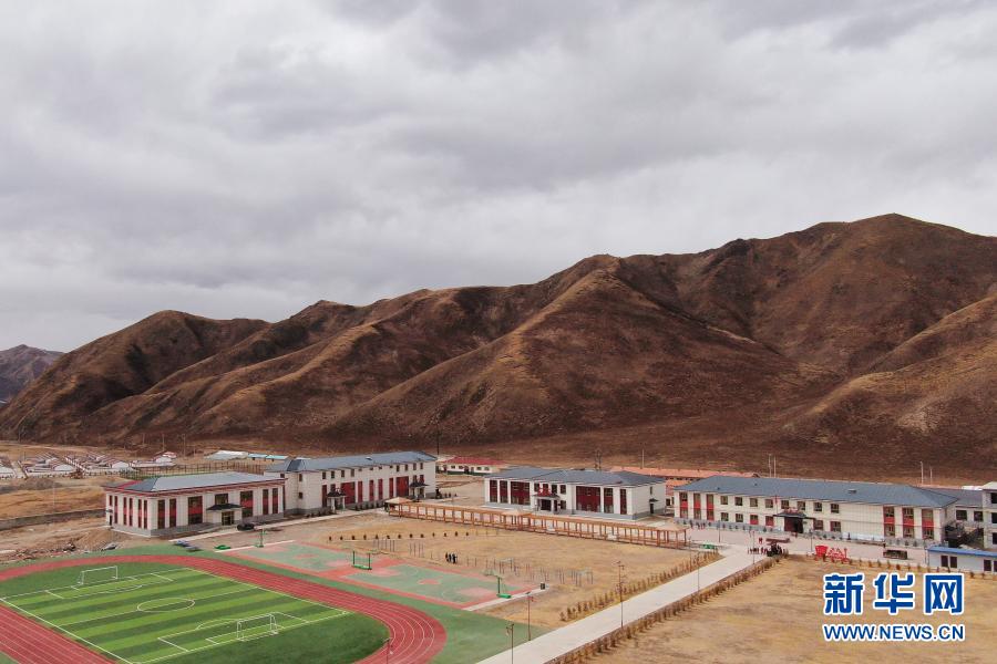 3月17日拍攝的果洛藏族自治州甘德縣下貢麻鄉(xiāng)寄宿制中心小學(xué)(無人機(jī)照片)。 新華社記者 張龍 攝