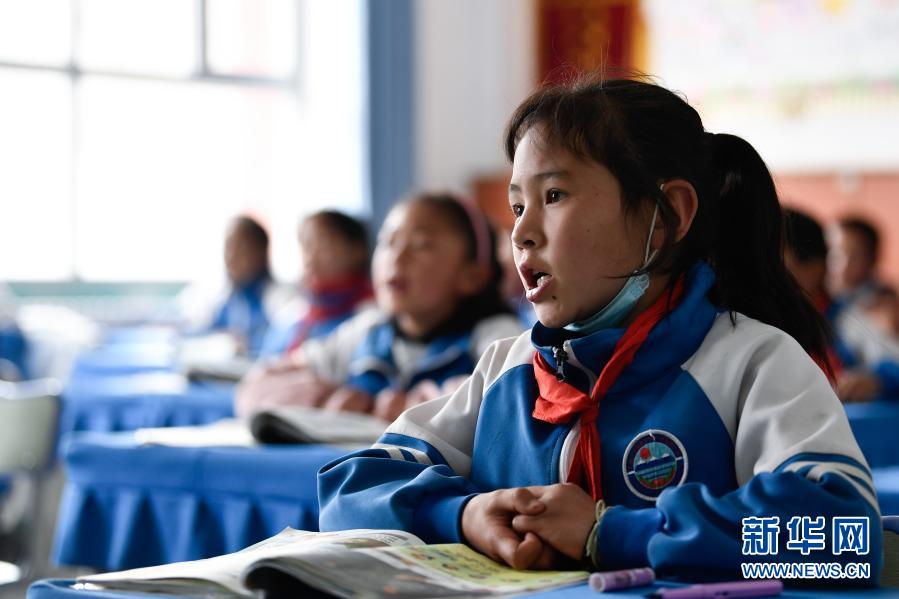 3月17日,在果洛藏族自治州甘德縣下貢麻鄉(xiāng)寄宿制中心小學(xué),學(xué)生在上課。新華社記者 張龍 攝
