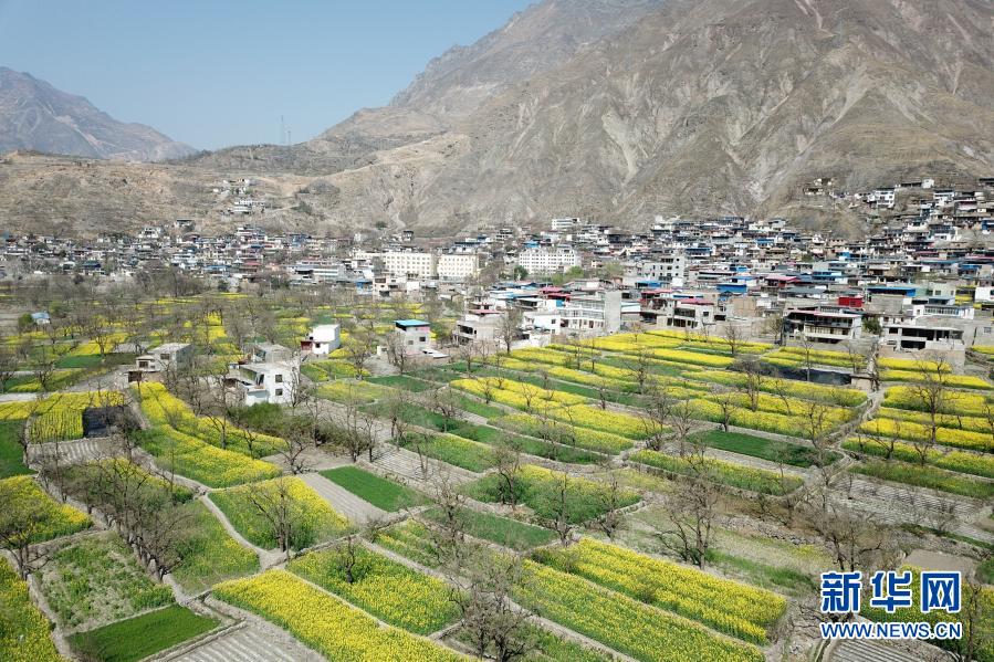 這是3月17日在舟曲縣城關鎮(zhèn)境內(nèi)拍攝的油菜花(無人機照片)。新華社記者 范培珅 攝