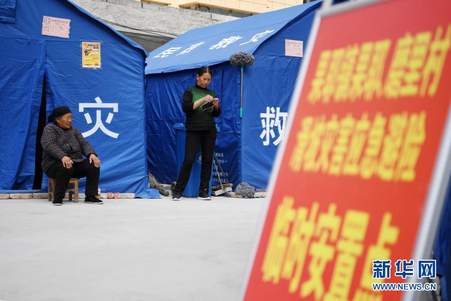 3月16日,在舟曲縣果耶鎮(zhèn)磨里村、果耶村滑坡災(zāi)害應(yīng)急避險臨時安置點,受災(zāi)群眾在帳篷外休息。新華社記者 范培珅 攝