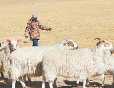 達玉村生態(tài)畜牧業(yè)專業(yè)合作社放牧員才科在放牧。王梅 攝