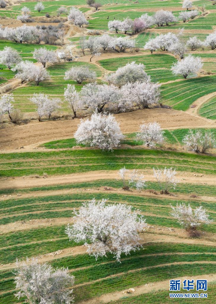4月3日,在得榮縣白松鎮(zhèn)奪松村,當(dāng)?shù)夭刈迦罕娫诖焊o(wú)人機(jī)照片)。新華社記者 江宏景 攝