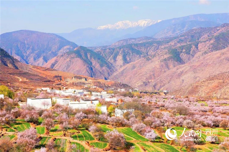 四川省得榮縣:桃花恣意綻放 美成人間仙境