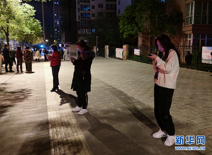 5月22日凌晨,西寧市民在空曠地帶避險(xiǎn)(手機(jī)照片)。新華社記者 張龍 攝