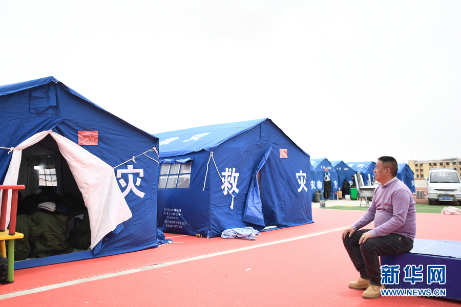 5月23日夜間,李加才讓在瑪多縣民族寄宿制中學(xué)操場(chǎng)的學(xué)生營(yíng)地巡查。新華社記者 張龍 攝
