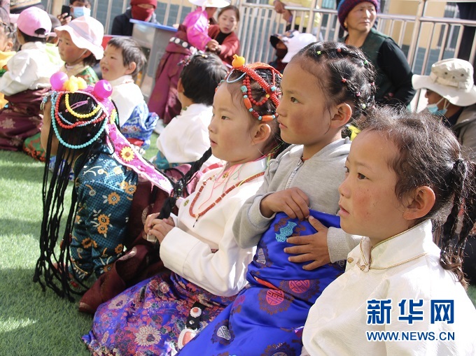 今年的“六一”活動(dòng)上,貢巴幼兒園的小朋友們表演了藏族歌舞、《三字經(jīng)》朗誦等精彩節(jié)目。小男孩們穿上藏袍、戴上氈帽,活潑地跳起鍋莊。小女孩們盛裝打扮,頭上用彩色頭繩編滿了小辮兒,腰間特色銀飾叮當(dāng)作響。親子互動(dòng)游戲笑聲不斷,欄桿外的老阿媽看得興致盎然。