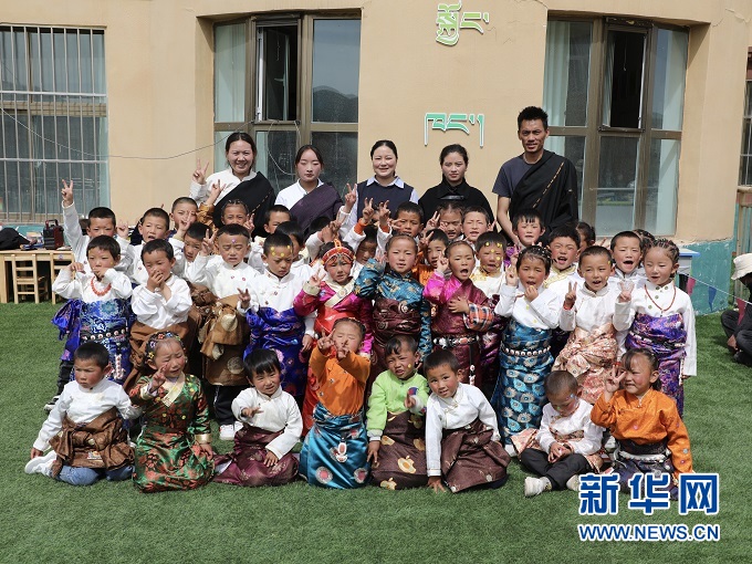 穿上藏袍唱歌舞蹈,6歲的扎西納木甲第一次在幼兒園與38名同學(xué)一起過(guò)了“六一”兒童節(jié)。笑聲從貢巴幼兒園傳出,飄向校門外的青青草原。