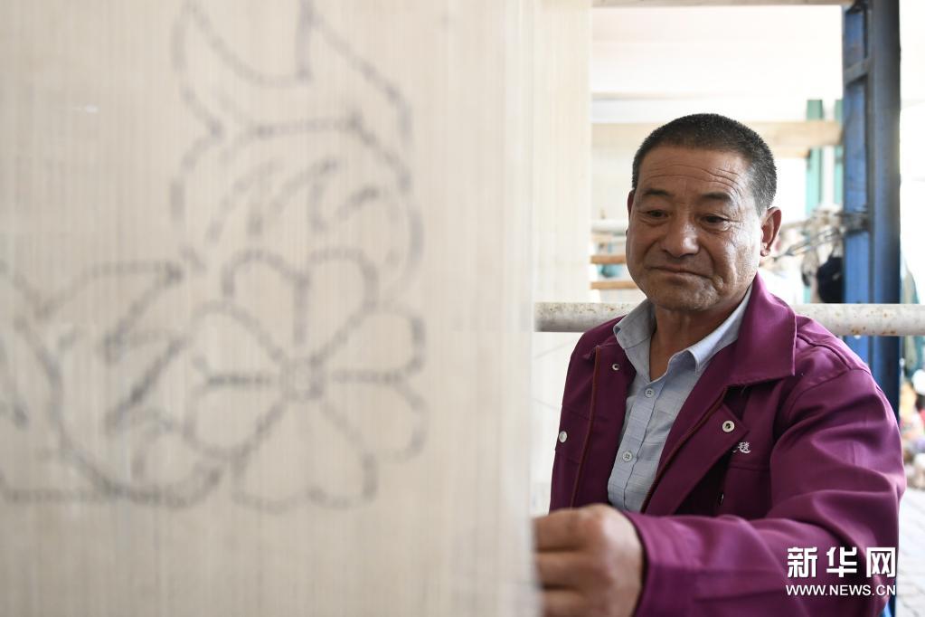6月5日,在西寧市湟中縣上新莊鎮(zhèn)加牙村,楊永良在制作藏毯。新華社記者 張龍 攝