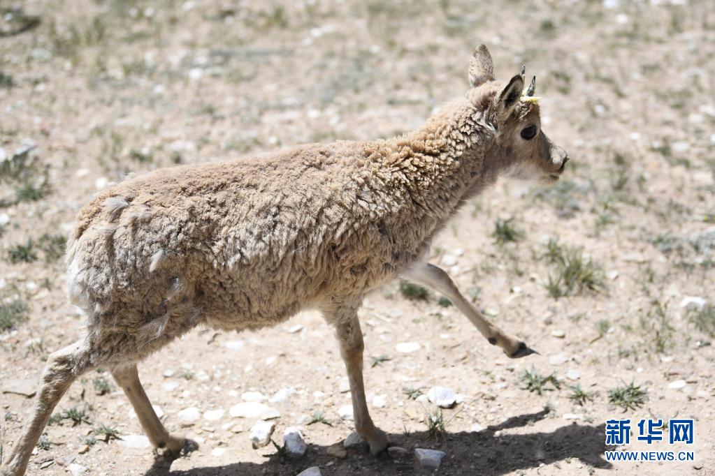 這是7月7日在可可西里索南達杰保護站野生動物救助中心拍攝的一只被放歸自然的藏羚羊。新華社記者 張龍 攝