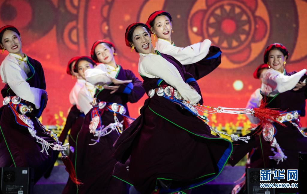 7月23日,在道孚縣縣城,演員們在舞臺(tái)上表演。新華社記者 江宏景 攝