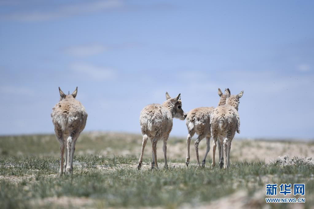 這是7月7日在可可西里拍攝的藏羚羊。新華社記者 張龍 攝