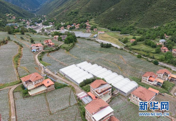 這是四川省阿壩藏族羌族自治州紅原縣邛溪鎮(zhèn)熱坤村的蔬菜大棚(8月13日攝,無人機(jī)照片)。新華社記者 江宏景 攝