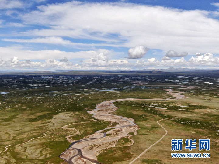 這是7月23日拍攝的長江源地區(qū)的查旦濕地(無人機(jī)照片)。新華社記者 張龍 攝