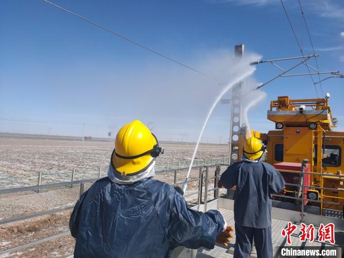 青藏鐵路從青海省海西州察爾汗鹽湖橫穿而過,成為世界上唯一一條建在鹽湖上的鐵路,而這一段約33公里的線路也被稱為“萬丈鹽橋”。察爾汗鹽湖區(qū)域空氣中鹽分含量高,很容易在鐵路牽引供電接觸網(wǎng)設(shè)備上形成鹽污,造成線路跳閘,甚至導(dǎo)致大面積停電,誘發(fā)行車安全事故。為了保障青藏鐵路的暢通運(yùn)行,青藏集團(tuán)公司西寧供電段格爾木大修車間將對管內(nèi)鹽污區(qū)段牽引供電設(shè)備進(jìn)行為期20天的清洗工作。