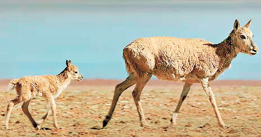 藏羚羊每年12月交配,次年5月開始,懷孕的母藏羚羊會跋涉數(shù)百公里乃至上千公里,到產(chǎn)崽地——烏蘭烏拉湖、卓乃湖、可可西里湖和太陽湖等地產(chǎn)崽,到了7月,再帶著新生的羔羊返回棲息地。
